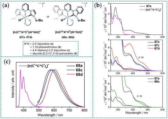- Chung, L.-H.; Lo, H.-S.; Ng, S.-W.; Ma, D.-L.; Leung, C.-H.; Wong, C.-Y. Luminescent Iridium(III) Complexes Supported by N-Heterocyclic Carbene-based C^C^C-Pincer Ligands and Aromatic Diimines. Sci. Rep. 2015, 5, 15394. [Google Scholar] [CrossRef]