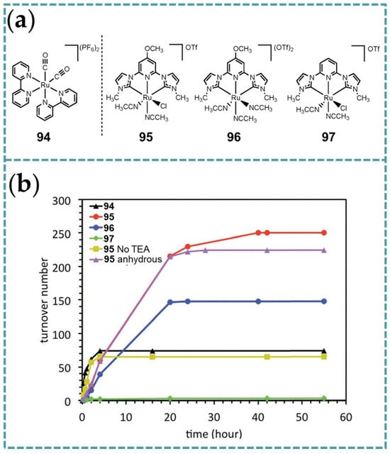 - Das, S.; Nugegoda, D.; Qu, F.; Boudreaux, C.M.; Burrow, P.E.; Figgins, M.T.; Lamb, R.W.; Webster, C.E.; Delcamp, J.H.; Papish, E.T. Structure Function Relationships in Ruthenium Carbon Dioxide Reduction Catalysts with CNC Pincers Containing Donor Groups. Eur. J. Inorg. Chem. 2020, 2020, 2709–2717. [Google Scholar] [CrossRef]