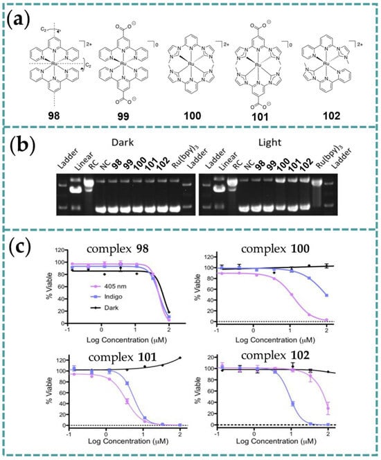 - Ryan, R.T.; Stevens, K.C.; Calabro, R.; Parkin, S.; Mahmoud, J.; Kim, D.Y.; Heidary, D.K.; Glazer, E.C.; Selegue, J.P. Bis-tridentate N-Heterocyclic Carbene Ru(II) Complexes are Promising New Agents for Photodynamic Therapy. Inorg. Chem. 2020, 59, 8882–8892. [Google Scholar] [CrossRef] [PubMed]