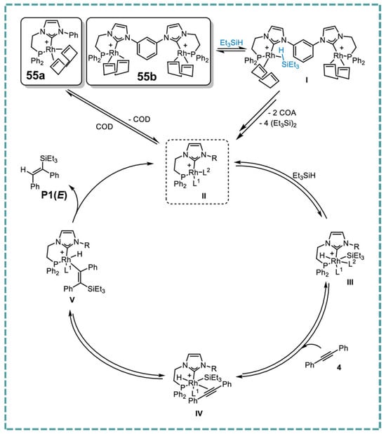- Lam, R.H.; Keaveney, S.T.; Messerle, B.A.; Pernik, I. Bimetallic Rhodium Complexes: Precatalyst Activation-Triggered Bimetallic Enhancement for the Hydrosilylation Transformation. ACS Catal. 2023, 13, 1999–2010. [Google Scholar] [CrossRef]