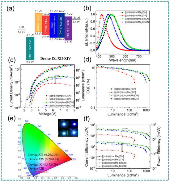 - Kuo, H.-H.; Hsu, L.-Y.; Tso, J.-Y.; Hung, W.-Y.; Liu, S.-H.; Chou, P.-T.; Wong, K.-T.; Zhu, Z.-L.; Lee, C.-S.; Jen, A.K.Y.; et al. Blue-emitting bis-tridentate Ir(III) phosphors: OLED performances vs. substituent effects. J. Mater. Chem. C 2018, 6, 10486–10496. [Google Scholar] [CrossRef]