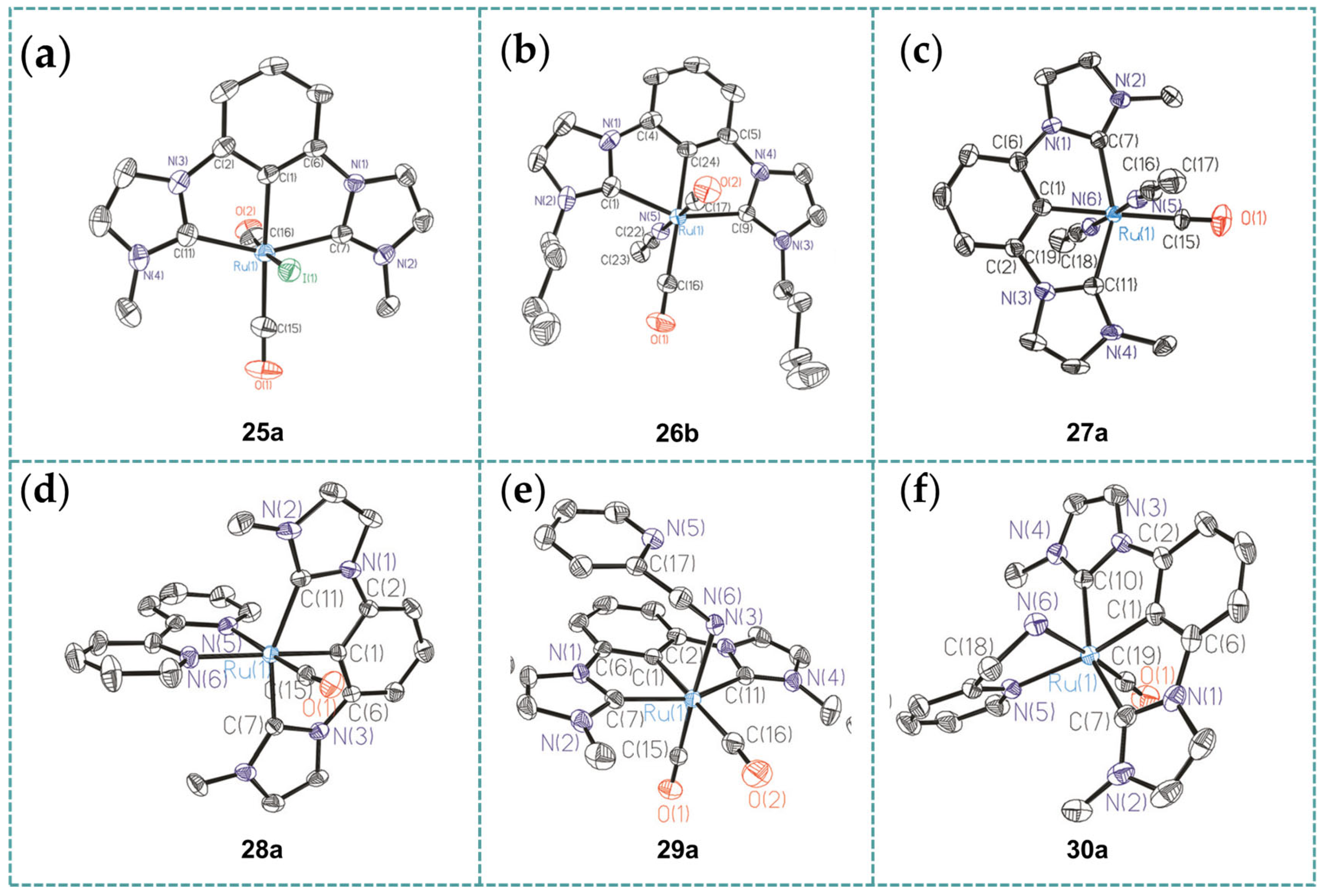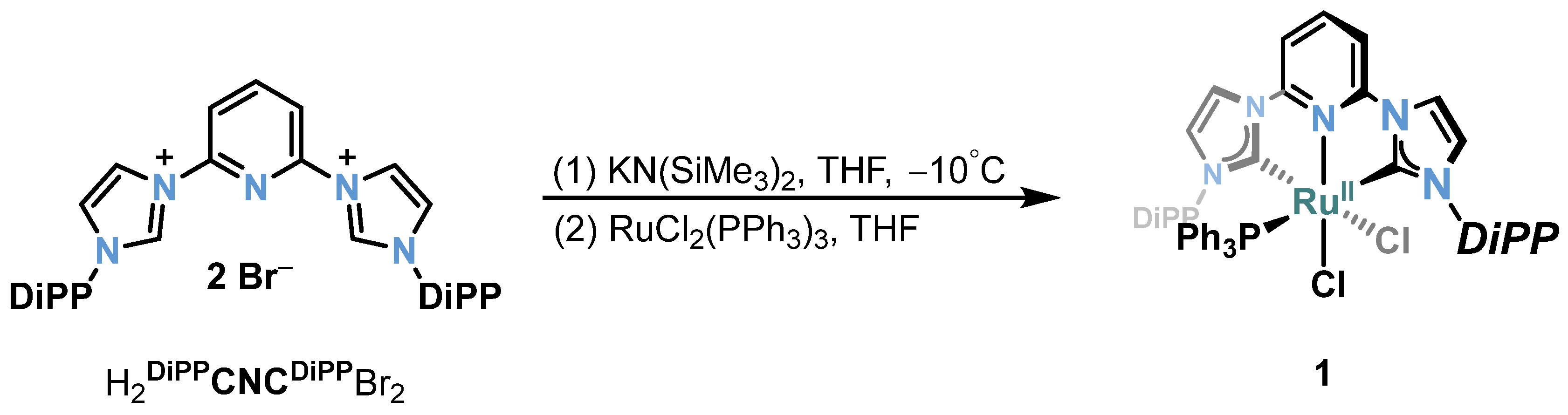 - Zhang, Y.-M.; Shao, J.-Y.; Yao, C.-J.; Zhong, Y.-W. Cyclometalated ruthenium(II) complexes with a bis-carbene CCC-pincer ligand. Dalton Trans. 2012, 41, 9280–9282. [Google Scholar] [CrossRef] [PubMed]