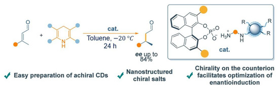 The scheme of the asymmetric catalytic use of achiral CDs. Reproduced with permission from [63].