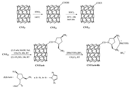The process of CNT1a-b-Rh synthesis. Reproduced with permission from [26].