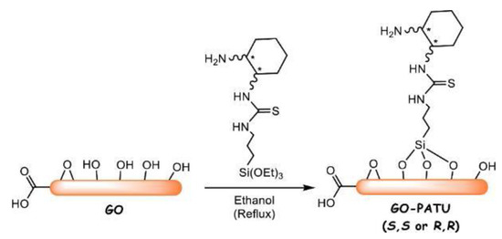 The process of GO-PATU synthesis. * Represents chiral carbon. Reproduced with permission from [37].
