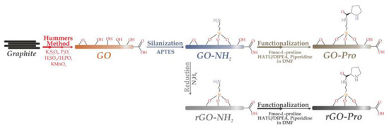 The process of GO-Pro and rGO-Pro synthesis. Reproduced with permission from [39].