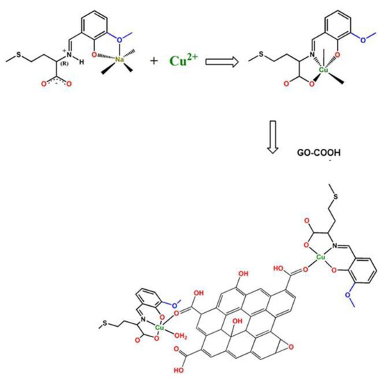 The process of GO-supported Cu-valmet complex synthesis. Reproduced with permission from [46].