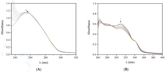 UV-vis spectroscopy may provide useful information on the interaction of complexes with CT DNA, resulting in the calculation of the corresponding DNA-binding constant (Kb). The foregoing study involves two steps; the first step evaluates the shift (λmax = 258 nm) of the UV-band of CT DNA with an increasing amount of the studied compound, while the second step evaluates the changes induced to the intra-ligand bands of the complexes due to the incremental quantities of DNA. In all cases, the red shift may indicate the stabilization of the DNA structure.