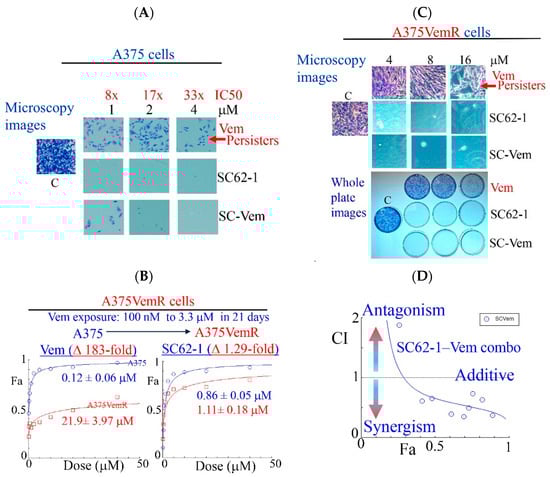 2.3. SC-62-1 Prevents Appearance of Drug Resistance and Effectively Kills Melanoma Cells with Acquired Resistance to BRAF Inhibitors