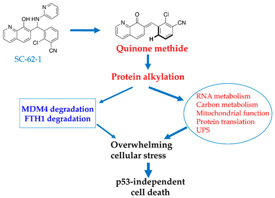 - Lama, R.; Galster, S.L.; Xu, C.; Davison, L.W.; Chemler, S.R.; Wang, X. Dual Targeting of MDM4 and FTH1 by MMRi71 for Induced Protein Degradation and p53-Independent Apoptosis in Leukemia Cells. Molecules 2022, 27, 7665. [Google Scholar] [CrossRef]