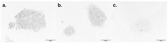 Several breast cell lines representing diverse types of breast cancer were investigated in the study. HCC1937 and MDA-MB-468 represent triple-negative breast cancer (TNBC), MCF-7 as a hormone receptor-positive (HR+) cell line, and BT-474 as HER2/neu-positive (HER2+) cell line [49]. Moreover, the 184B5 cell line is chemically transformed; it originates from normal mammary tissue representing healthy breast cells [50]. All cell lines were obtained from the cell lines stock of the Leibniz Institute of Plant Biochemistry (IPB; Halle (Saale), Germany) and were originally purchased from DSMZ (Braunschweig, Germany) and ATCC (Manassas, VA, USA). 184B5 was cultured using the Endopan 3 kit, while MDA-MB-468 was cultured in high glucose DMEM supplemented with 10% (v/v) heat-inactivated FCS. BT-474, HCC1937, and MCF-7 were cultured in RPMI 1640 medium supplemented with 10% (v/v) heat-inactivated FCS, 1% (v/v) L-glutamine, and 1% (v/v) penicillin/streptomycin. Cells were grown in their media in a humidified atmosphere with 5% CO2 at 37 °C. The confluence was monitored daily using light microscopy. Whenever the confluency reached 90%, cells were detached using 0.05% trypsin-EDTA and diluted as indicated by the American Type Culture Collection (ATCC) guidelines. The cell density used for seeding depended on the surface area of the plates used. For 96-well plates and 6-well plates, 6 × 103 cells/well and 1.5 × 105 cells/well, respectively, were used.