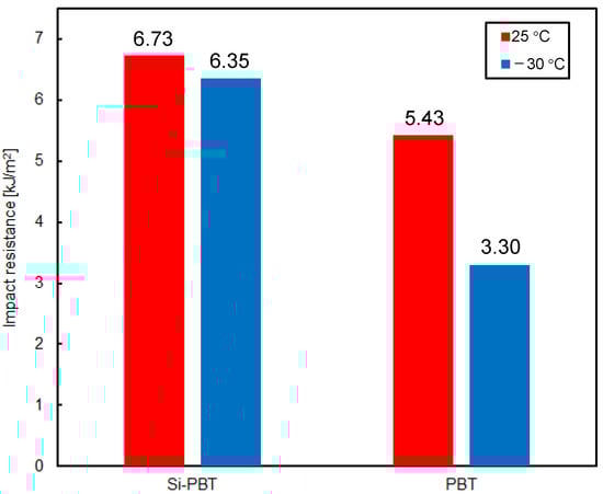 Impact resistance of Si-PBT and PBT at 25 °C or −30 °C.