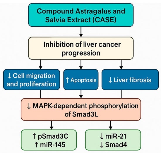 - Wu, C.; Chen, W.; Fang, M.; Boye, A.; Tao, X.; Xu, Y.; Hou, S.; Yang, Y. Compound Astragalus and salvia miltiorrhiza extract inhibits hepatocellular carcinoma progression via miR-145/miR-21 mediated Smad3 phosphorylation. J. Ethnopharmacol. 2019, 231, 98–112. [Google Scholar] [CrossRef]
