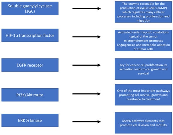 The role of nitric oxide (NO) in a particular type of cancer [,,,,,,,,,].
