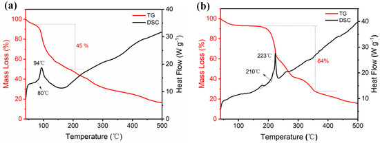 Thermal stability is a fundamental evaluation index for assessing the safety performance of energetic materials. In this study, the thermal stability of compound 2 and ammonium salt 3 was investigated using differential scanning calorimetry (DSC) and thermogravimetric analysis (TGA) at a heating rate of 10 °C·min−1 in a nitrogen atmosphere. A sample weight of 0.5 mg was utilized for each test. The results from the DSC and TGA analyses are presented in Figure 7. According to the DSC thermogram, compound 2 undergoes exothermic decomposition starting at 80 °C, with the maximum exothermic peak appearing at 94 °C. The corresponding TG curve indicates a mass loss of 45%. Based on its thermal decomposition behavior, it can be concluded that the analyzed powder sample did not contain any water molecules from the solvent. After nitration with fuming nitric acid, the decomposition temperature decreased significantly; however, the thermal stability improved markedly upon conversion to the ammonium salt. For ammonium salt 3, the initial exothermic decomposition peak was found at 210 °C, and the maximum exothermic peak temperature reached 223 °C. This decomposition process involved a substantial mass loss of 65%. These results emphasize the important role of chemical modifications in improving the thermal stability of energetic materials.