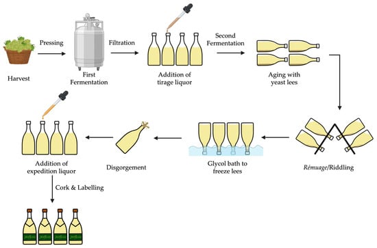Schematic representation of traditional sparkling wine production.