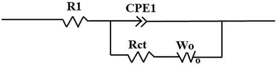 The EIS impedance spectra were fitted according to the equivalent circuit of Figure 12. From the fitted results, the initial charge transfer resistance (Rct) of Al-MgVO is measured to be 1015.2 Ω, which significantly decreases to 211.9 Ω after 50 charge/discharge cycles. This substantial reduction in Rct clearly indicates that the electrode undergoes a notable activation process during cycling. The decreased Rct suggests an enhancement in charge transfer kinetics and a reduction in electrode polarization, likely resulting from improved electronic conductivity and better ion diffusion pathways formed through electrochemical activation.