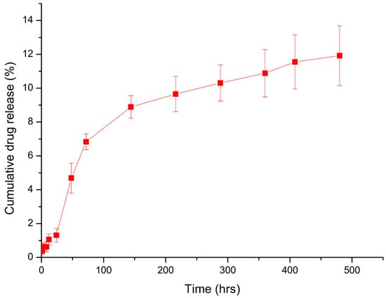 In vitro bedaquiline-loaded nanoparticle drug release at pH 7.4 over 20 days (n = 3). Error bars = SEM.