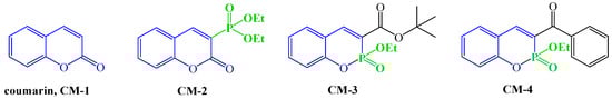 Structural modifications, such as the introduction of a phosphonate at position 3 of the coumarin core (CM-2), or the transformation of a coumarin into phosphocoumarin with a carbonyl group at position 3 (CM-3 and CM-4), led to a significant increase in the value of key molecular parameters compared to the initial structure of coumarin CM-1: