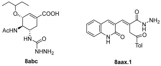 Besides the regular functional groups, Zhao et al. [99] obtained the hydrazide 8aay from activated intermediary 20 by reaction with hydrazine hydrate (Scheme 2). The acid derivative 8abc was obtained from 8aay by reaction with sodium hydroxide in aqueous methanol.