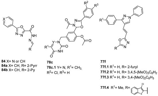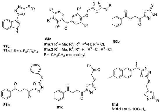 - Stecoza, C.E.; Nitulescu, G.M.; Draghici, C.; Caproiu, M.T.; Olaru, O.T.; Bostan, M.; Mihaila, M. Synthesis and Anticancer Evaluation of New 1,3,4-Oxadiazole Derivatives. Pharmaceuticals 2021, 14, 438. [Google Scholar] [CrossRef]