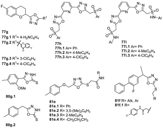 - Dhonnar, S.L.; More, R.A.; Adole, V.A.; Jagdale, B.S.; Sadgir, N.V.; Chobe, S.S. Synthesis, spectral analysis, antibacterial, antifungal, antioxidant and hemolytic activity studies of some new 2,5-disubstituted-1,3,4-oxadiazoles. J. Mol. Struct. 2022, 1253, 132216. [Google Scholar] [CrossRef]