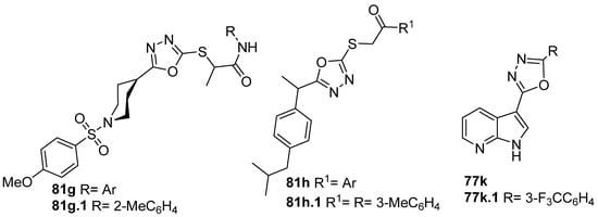 - Javid, J.; Aziz-ur-Rehman; Abbasi, M.A.; Siddiqui, S.Z.; Iqbal, J.; Virk, N.A.; Rasool, S.; Ali, H.A.; Ashraf, M.; Shahid, W.; et al. Comparative conventional and microwave assisted synthesis of heterocyclic oxadiazole analogues having enzymatic inhibition potential. J. Heterocycl. Chem. 2021, 58, 93–110. [Google Scholar] [CrossRef]