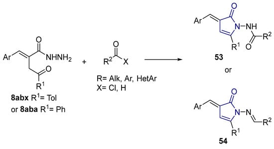 - Pelkey, E.T.; Pelkey, S.J.; Greger, J.G. De Novo Synthesis of 3-Pyrrolin-2-Ones. In Advances in Heterocyclic Chemistry; Scriven, E.F.V., Ramsden, C.A., Eds.; Elsevier Ltd.: Amsterdam, The Netherlands, 2015; Volume 115, pp. 151–285. ISBN 9780128021293. [Google Scholar]