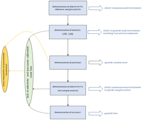 Considering the nature of all the parameters described, the validation of the measurement method is usually performed in the order shown in Figure 2.