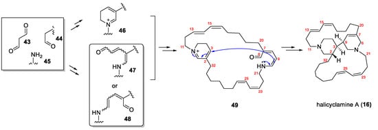 Bioinspired synthetic pathway of halicyclamine A (16) based on Marazano’s Proposal.