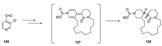 - Dalling, A.G.; Späth, G.; Fürstner, A. Total synthesis of the tetracyclic pyridinium alkaloid epi-tetradehydrohalicyclamine B. Angew. Chem. Int. Ed. 2022, 61, e202209651. [Google Scholar]