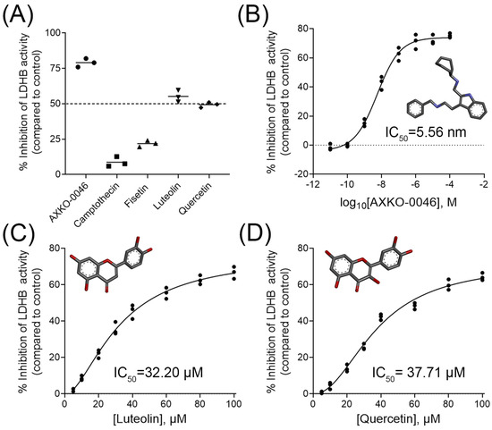 - Shibata, S.; Sogabe, S.; Miwa, M.; Fujimoto, T.; Takakura, N.; Naotsuka, A.; Kitamura, S.; Kawamoto, T.; Soga, T. Identification of the first highly selective inhibitor of human lactate dehydrogenase B. Sci. Rep. 2021, 11, 21353. [Google Scholar] [CrossRef]
