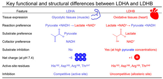 - Read, J.A.; Winter, V.J.; Eszes, C.M.; Sessions, R.B.; Brady, R.L. Structural basis for altered activity of M- and H-isozyme forms of human lactate dehydrogenase. Proteins 2001, 43, 175–185. [Google Scholar] [CrossRef]