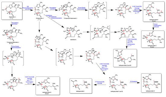 Proposed biogenetic pathways for the formation of the kallopterolides.