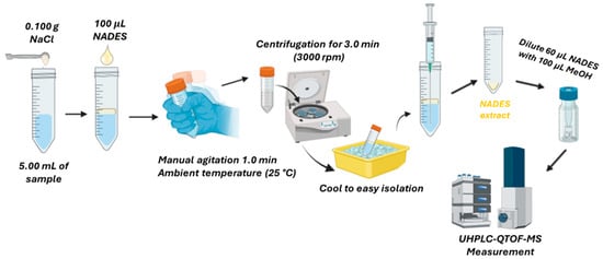 Schematic representation of the optimized NADES-based DLLME-UHPLC-QTOF-MS procedure. Created in BioRender.com.