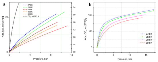 - Xiao, B.; Wheatley, P.S.; Zhao, X.; Fletcher, A.J.; Fox, S.; Rossi, A.G.; Megson, I.L.; Bordiga, S.; Regli, L.; Thomas, K.M.; et al. High-Capacity Hydrogen and Nitric Oxide Adsorption and Storage in a Metal−Organic Framework. J. Am. Chem. Soc. 2007, 129, 1203–1209. [Google Scholar] [CrossRef]
