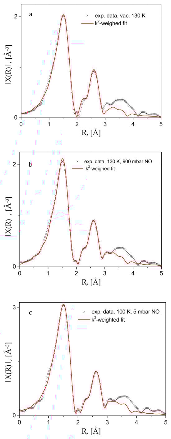 | 130 K, 900 mb NO | Cu-O | 3 | 1.939 (66) | 0.005 (1) | 0.016 |