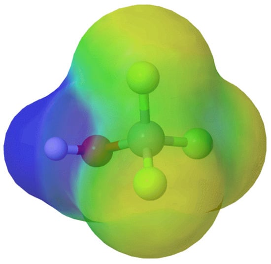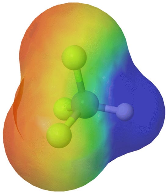 Chemical characteristics of the trifluoromethyl group. Electrostatic potential map in the range of −0.1 to 0.1 obtained using MolCalc®, where warm colors indicate higher and blue indicates lower electron density. Blue: positive; red: negative.