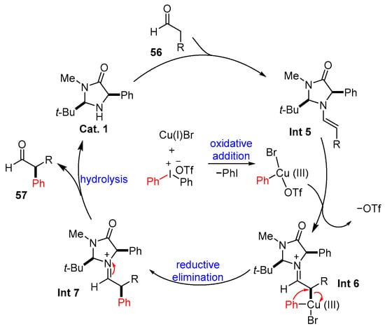 - Allen, A.E.; MacMillan, D.W.C. Enantioselective α-Arylation of aldehydes via the productive merger of iodonium salts and organocatalysis. J. Am. Chem. Soc. 2011, 133, 4260–4263. [Google Scholar] [CrossRef] [PubMed]