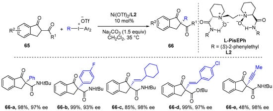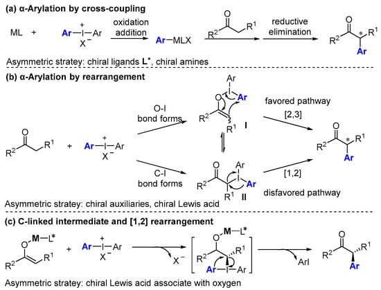 Over the past few decades, the α-arylation of carbonyl compounds is a significant area of research within this domain, with diaryliodonium salts emerging as efficient, mild, selective, and robust arylating agents to surmount this difficult problem. In 2022, Zhou and Yu [53] published a review article that covers the enantioselective α-arylation of carbonyl enolates and related compounds by iodonium salts. In 2025, Simlandy’s group [54] conducted a comprehensive review of metal-catalyzed enantioselective aryl transfer methodologies utilizing diaryliodonium salts. Despite significant achievements, to the best of our knowledge, there lacks a comprehensive review article to summarize the recent advances in the α-arylation of α-carbonyl compounds.