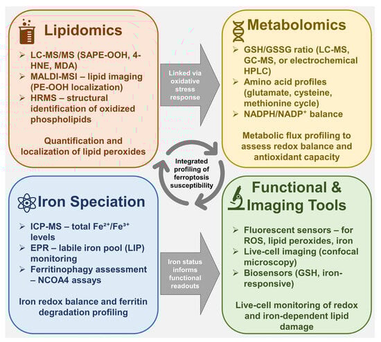 - Nguyen, C.T.N.; Kim, S.M.; Kang, Y.P. Mass Spectrometry-Based Approaches to Explore Metabolism Regulating Ferroptosis. BMB Rep. 2022, 55, 413–416. [Google Scholar] [CrossRef]