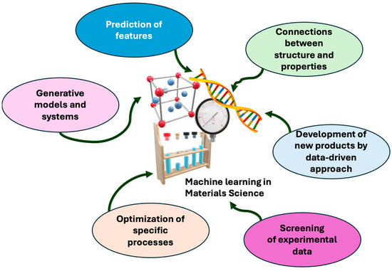ML is changing the world and science, opening new avenues for the development of innovative and functional materials. Starting from atomistic behavior and physicochemical data, it is possible to predict selected material properties using specific models [29]. Such models can be complex algorithms employed in imaging or material characterization, which can provide data-driven insights in the analysis of material properties and shed light on trends and not-obvious correlations [30]. Predictive models are fostering material discovery and optimization, also enabling the preparation of new compounds with customized features in diverse fields [31]. While, on one hand, the application of wide datasets and ML is making it possible for computers to learn as they progress, on the other hand, it is removing the need for long procedures based on trial and error, expensive routes, and dangerous synthesis steps along the fabrication of products. ML algorithms can recognize patterns, help in risk assessment, adapt over time, and extrapolate useful insights for the design of experiments [32]. ML is a subfield of computer science dealing with AI, and it mainly searches to reveal patterns from data to enhance performance in different activities.