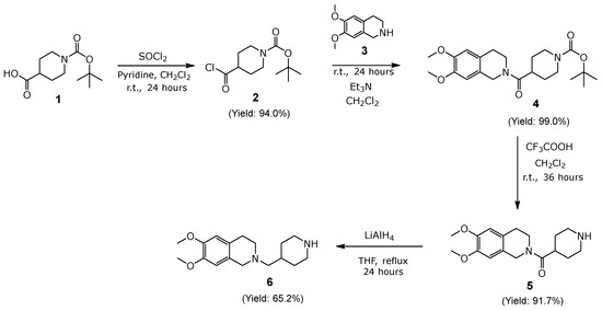 3.1.4. Procedures for the Synthesis of 6,7-Dimethoxy-2-(piperidin-4-ylmethyl)-1,2,3,4-tetrahydroisoquinoline (6)