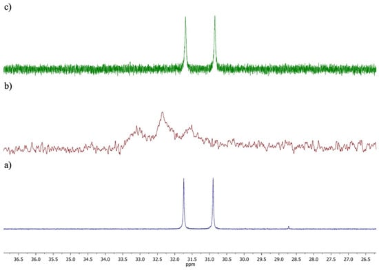 1P{1H} NMR spectra of the following: free complex 3 (a); encapsulated complex 3 (3⊂16) (b); after addition of NEt4Cl to 3⊂16 (c).