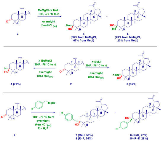 APA StyleCastiglione, D., Fontana, G., Castoldi, L., & Pace, V. (2025). Structural Modifications at the C3 and C30 Positions of the Lupane Skeleton with Carbon-Centered Nucleophiles. Molecules, 30(15), 3064. https://doi.org/10.3390/molecules30153064