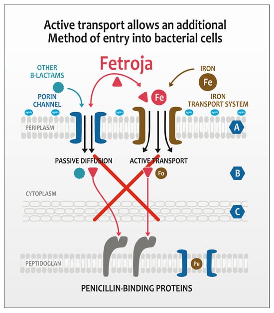 - Soriano, A.; Mensa, J. Mechanism of action of cefiderocol. Rev. Esp. Quimioter. 2022, 35, 16–19. [Google Scholar] [CrossRef] [PubMed]