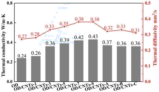 - With increasing CNT loading, the OD/CNTs CPCMs exhibited a marginal reduction in heat storage capacity, while both thermal conductivity and thermal diffusivity demonstrated linear enhancement.