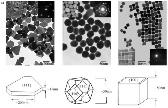 - Khodashenas, B.; Ghorbani, H.R. Synthesis of silver nanoparticles with different shapes. Arab. J. Chem. 2019, 12, 1823–1838. [Google Scholar] [CrossRef]