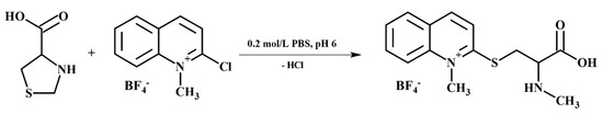- Bald, E.; Głowacki, R. 2-Chloro-1-Methylquinolinium Tetrafluoroborate as an Effective and Thiol Specific UV-Tagging Reagent for Liquid Chromatography. J. Liq. Chromatogr. Relat. Technol. 2001, 24, 1323–1339. [Google Scholar] [CrossRef]