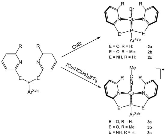 Synthesis of Cu(I) complexes 2a–c and 3a–c.
